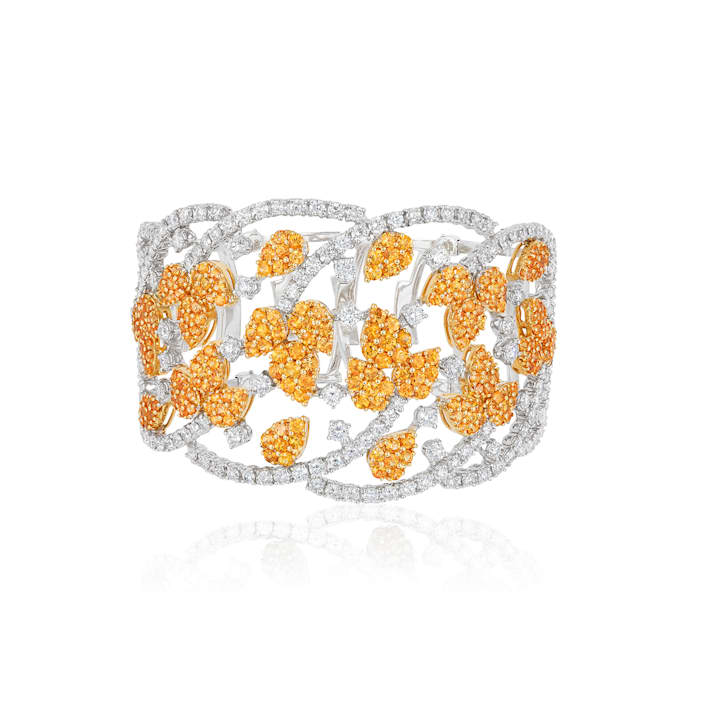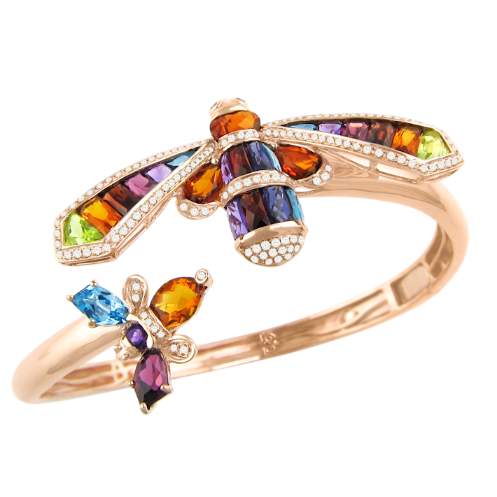 Jewelry worked in leather or other pliable material, especially with a buckle, falls into this category. Straps have an organic feel. Knotted pieces, woven beads and string … there are many popular looks from which to choose. Even precious metals can be woven into straps. If it’s flexible and can wrap around the wrist, anklet or finger, it can be classified as a strap.