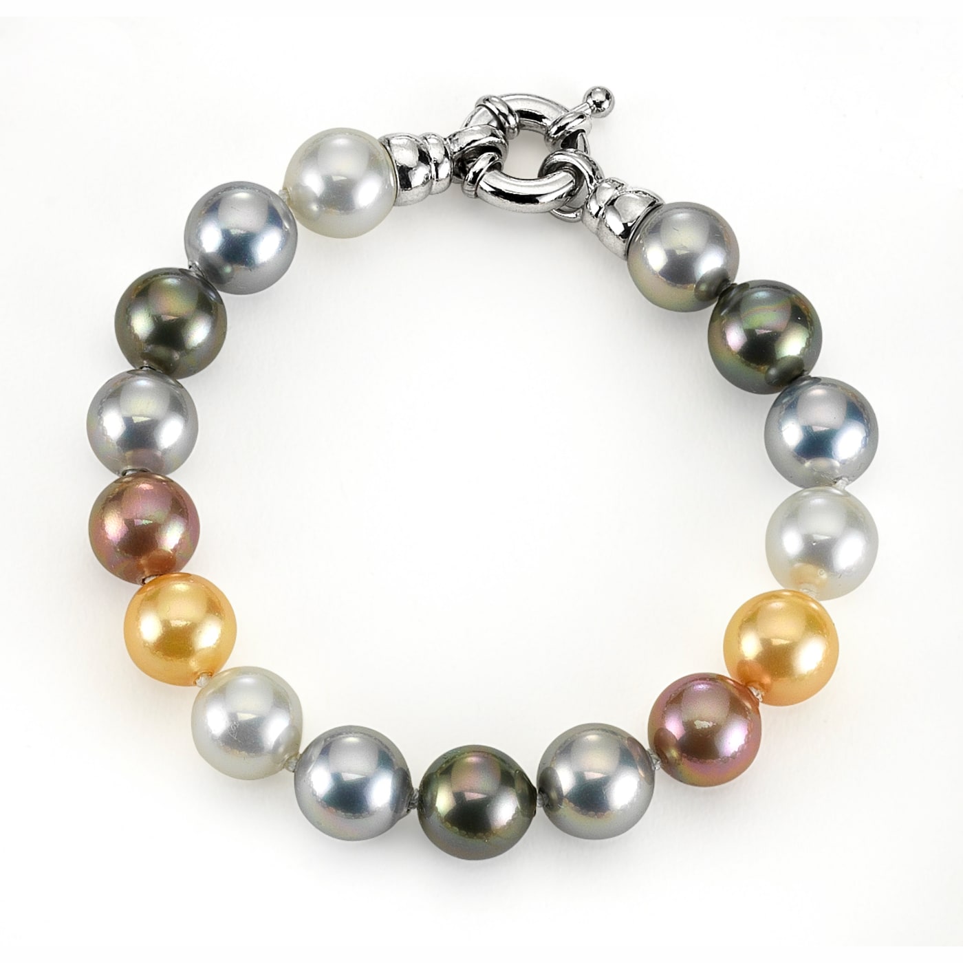 Any jewelry piece whose design incorporates lines of beads, links, pearls, etc., placed side-by-side and secured by a common clasp, closure or connection, can be described as multi-row.
