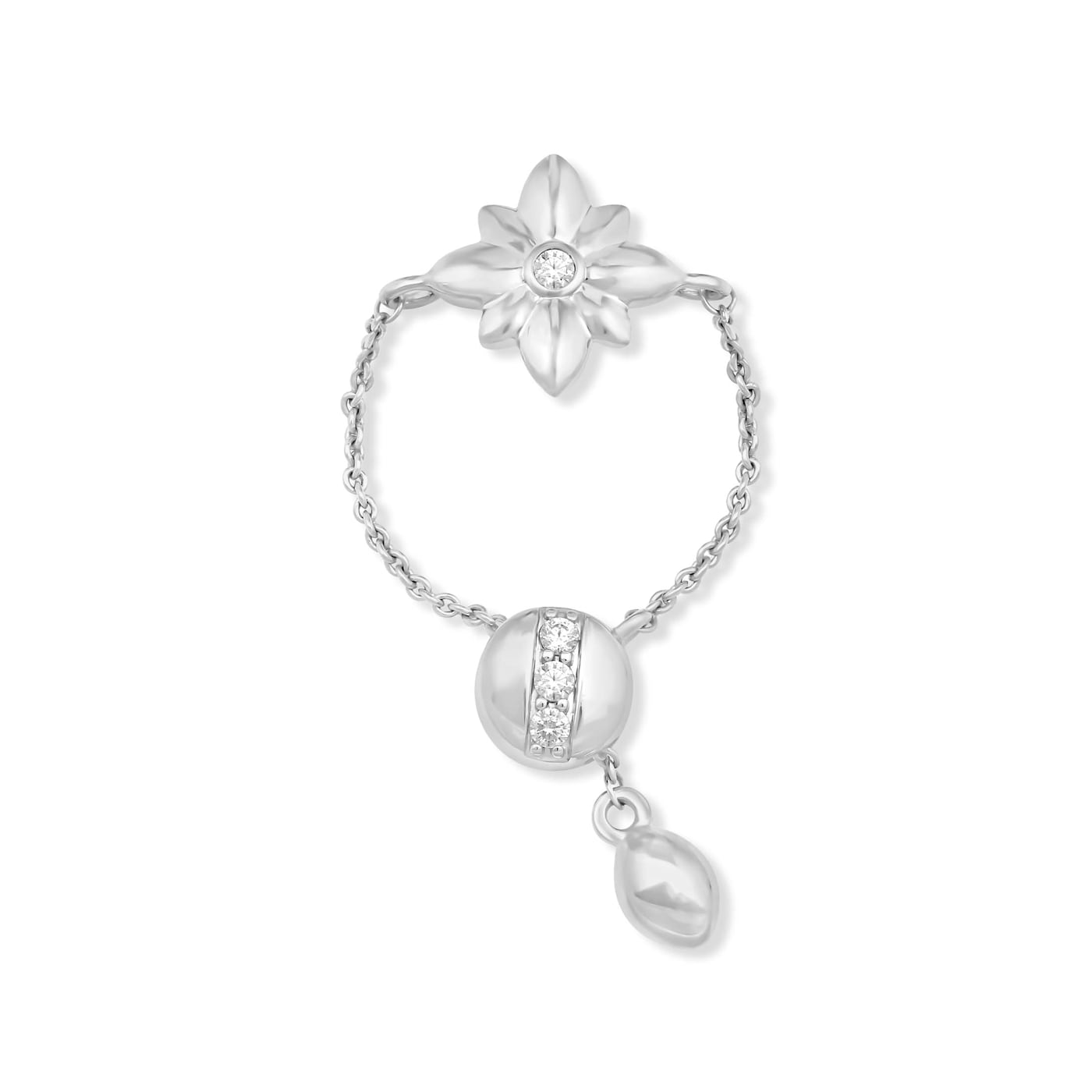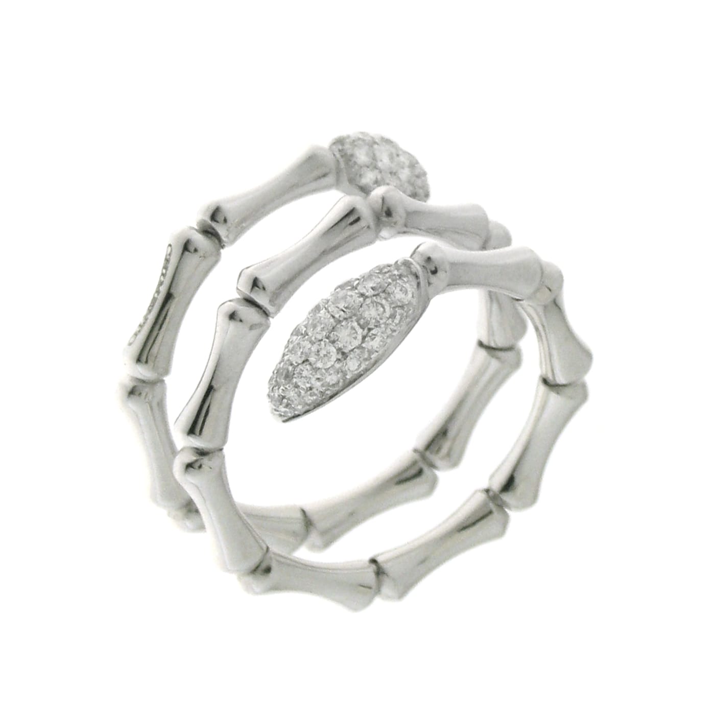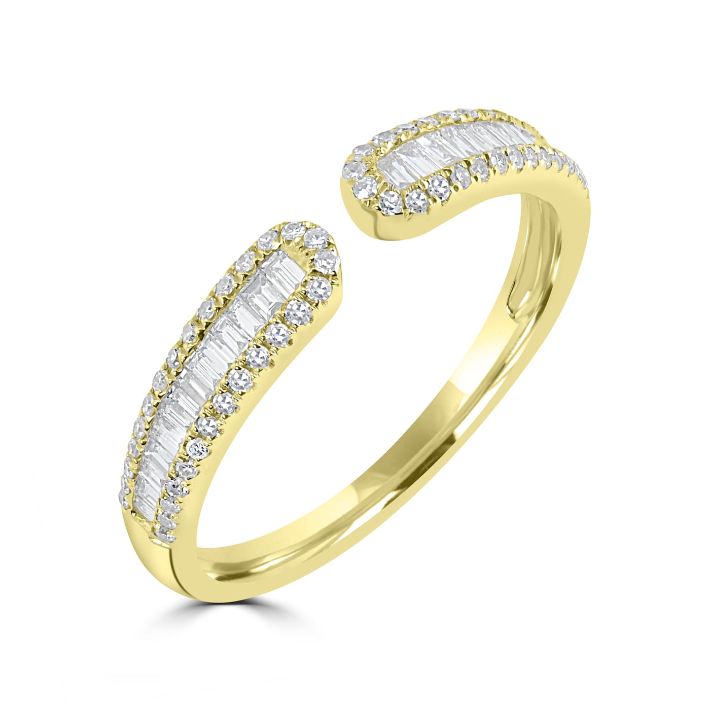 In a bridge ring, the center motif is raised above its band, just as a highway bridge is raised above water. The band beneath can be plain metal or set with gemstones.