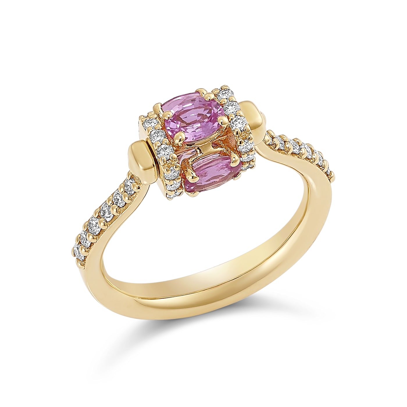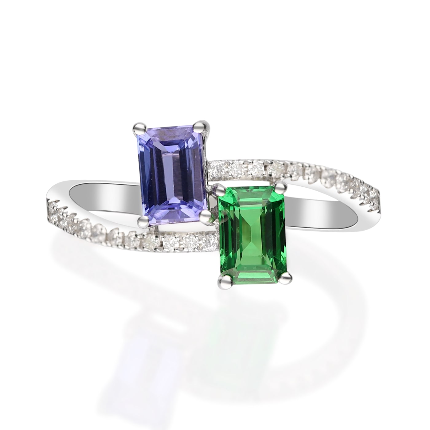 This jewelry style is characterized by the presence of a 2-stone motif at its center. The two stones may be the same stone or mixed stones, set vertically or set horizontally. While the stone types and settings may vary, the two stones featured have a similar presence in the design.