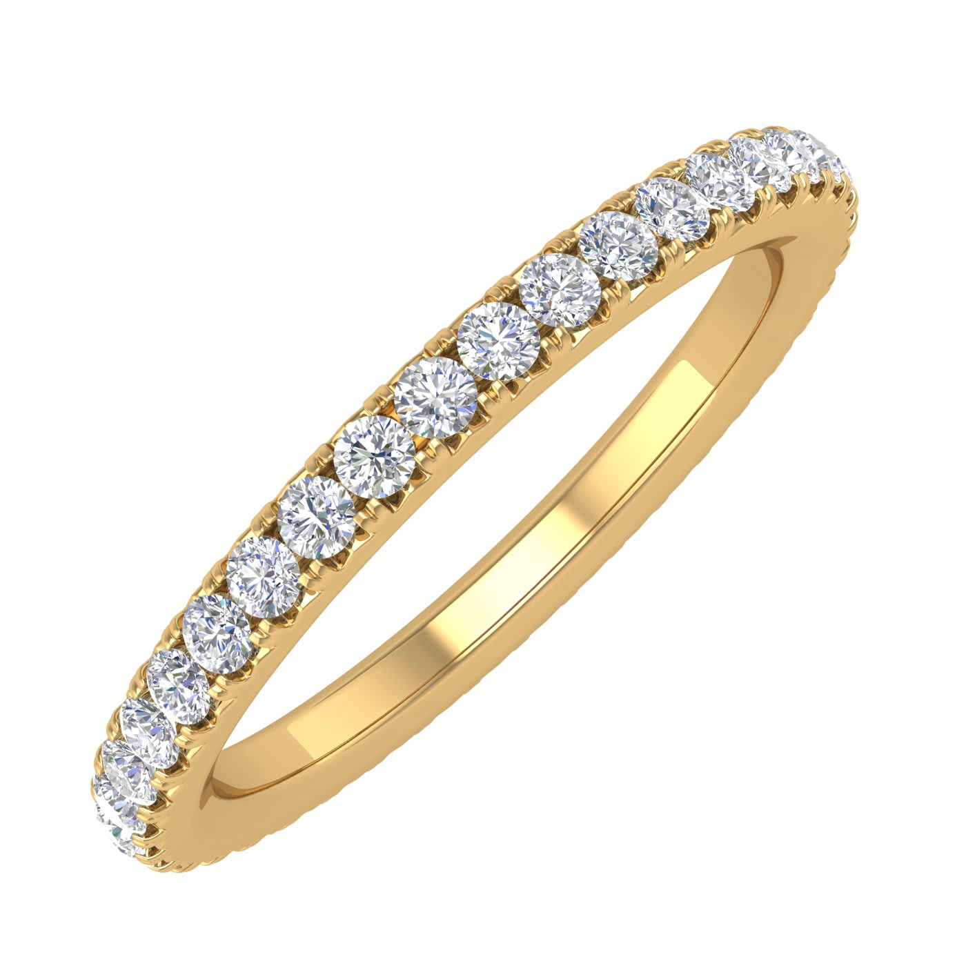 An eternity band is a style of ring that has gemstones set around the entire band. It’s called eternity, because there is no end.