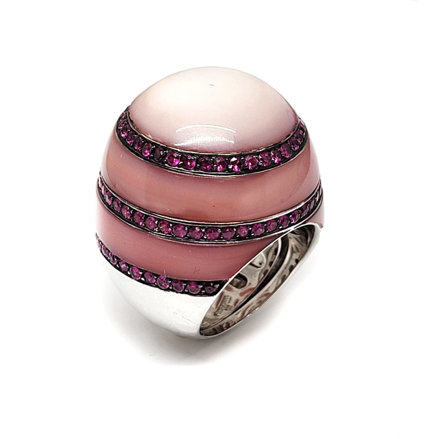 The cocktail ring is characterized by its statement-making size and is not a specific design. It can be a large center stone surrounded by smaller stones or a large fanciful design.